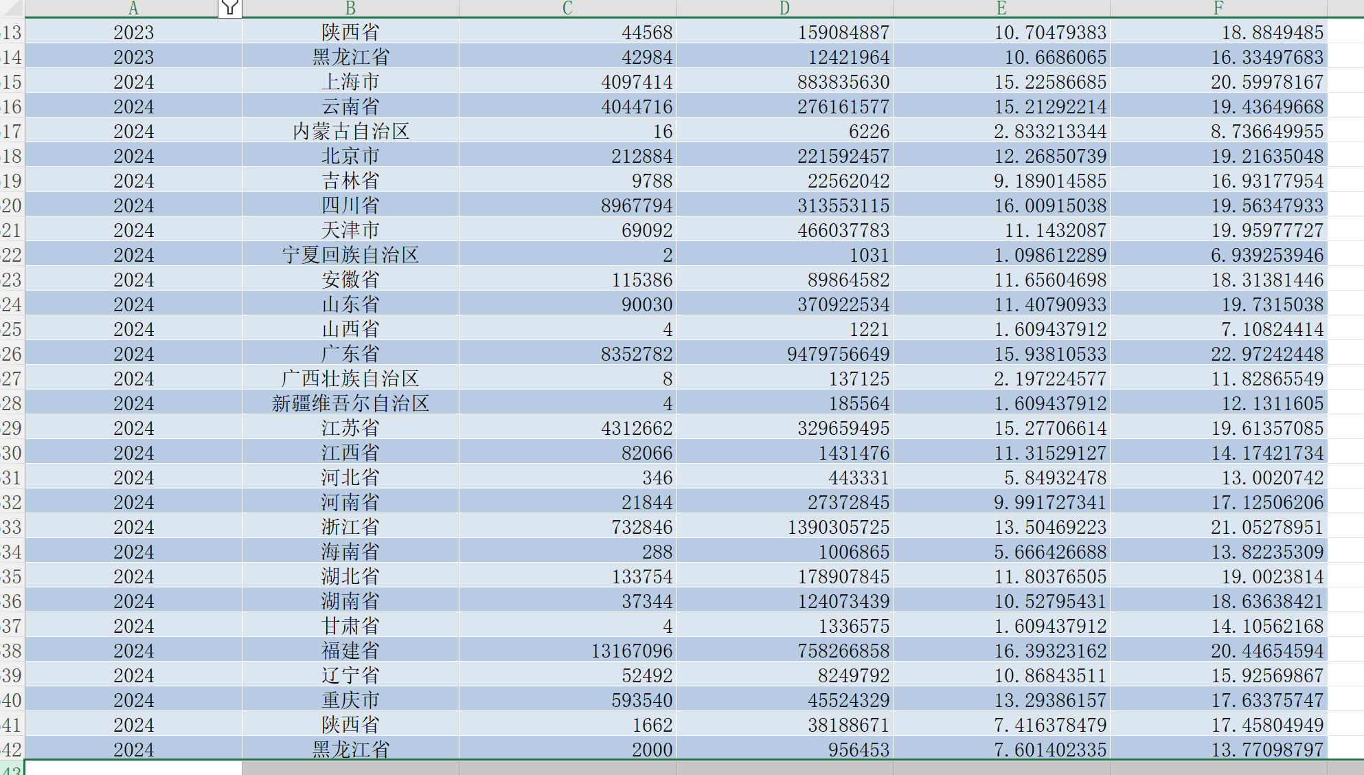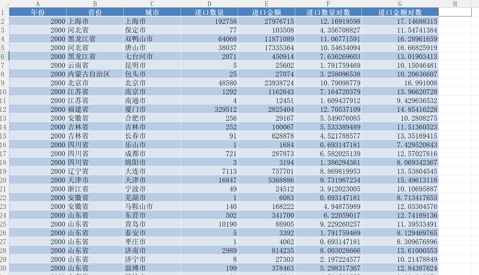 年份 省份 城市 进口数量 进口金额 进口数量对数 进口金额对数