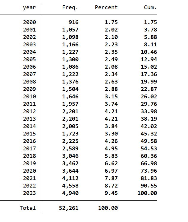 - 年份:2000-2023
