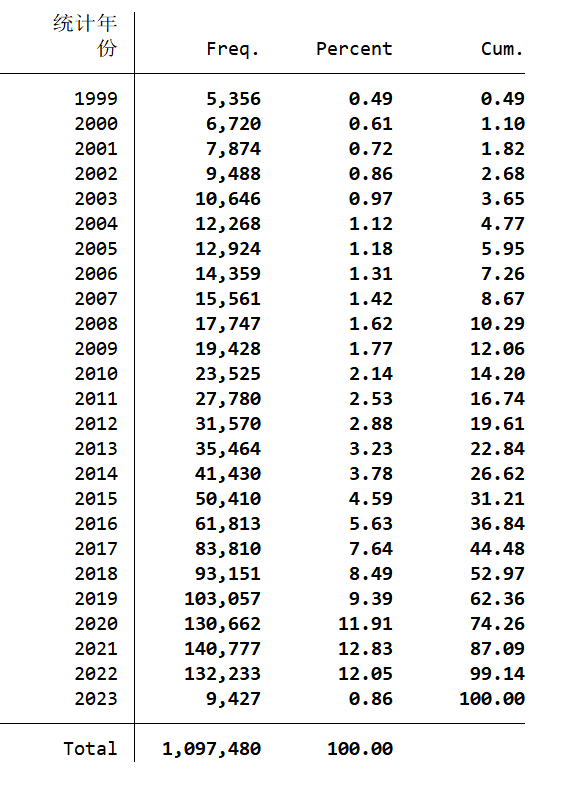 - 数据范围:1999-2023年
