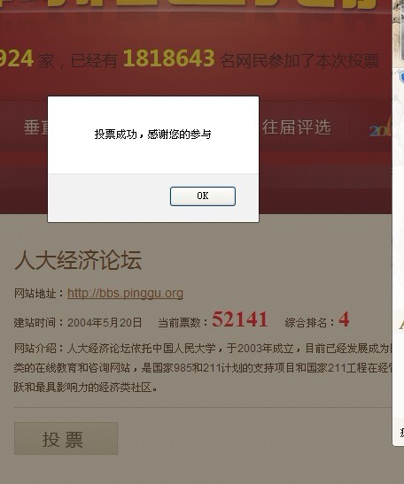 刚投了,大家齐心,都来投票!
