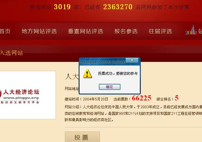 fyh619 发表于 2012-3-20 08:43 我一般是先发帖再投票的,已经持续一段时间了,我也是刚发现投票已经结束,我的发帖记录可以证明。不要动 ...