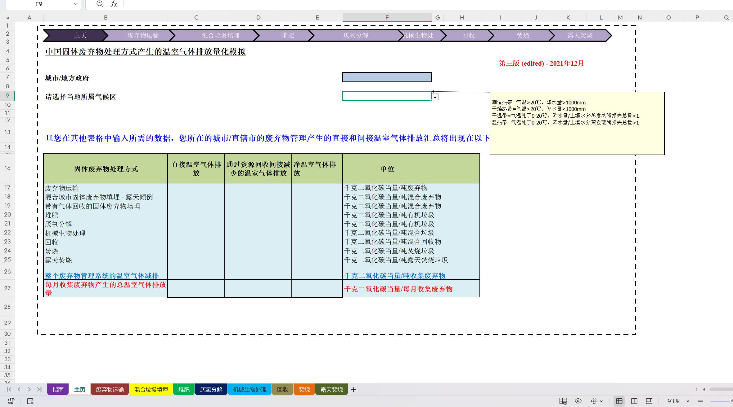全生命周期城市固体废弃物(MSW)管理温室气体排放估算工具-全球环境战略研究所.xls