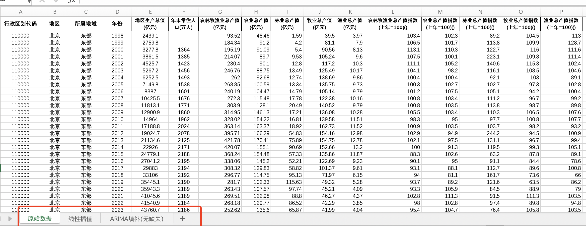 数据整理:Excel面板数据含原始数据(由于多年度指标不同存在缺失值)、线性插值、回归填补(无缺失)三个版本,提供您参考使用。其中,回归填补无缺失值,以保证面板数据的平衡性。