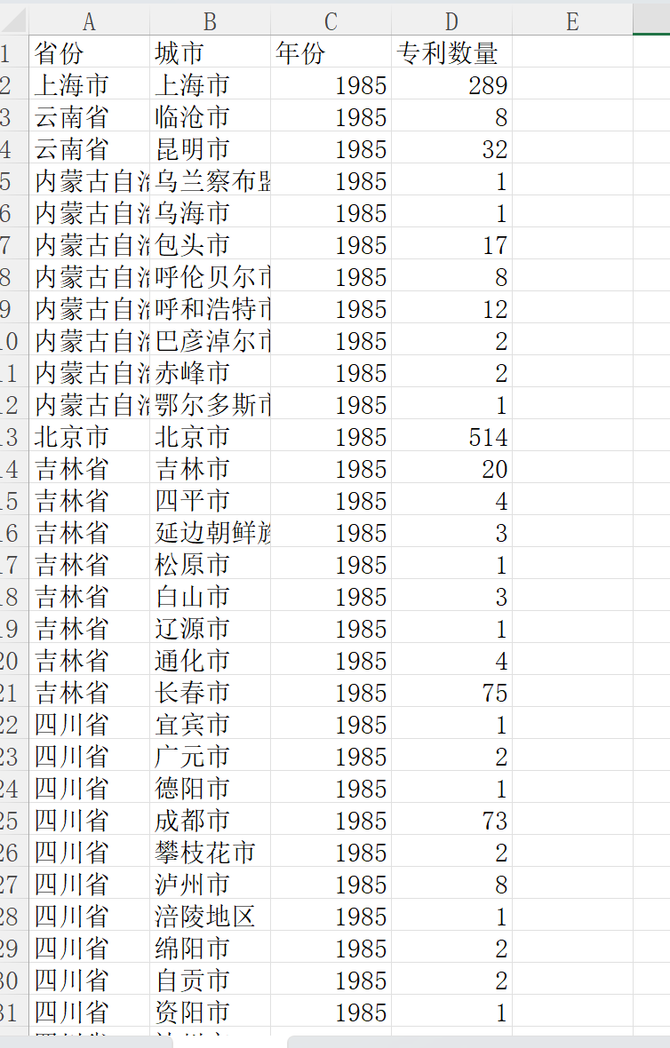 数据名称:地级市战略性新兴产业专利数据85-24年数据