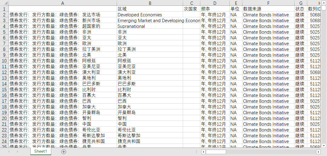 表 ESG.Climate Bonds Initiative:发行方数量:绿色债券:按地区