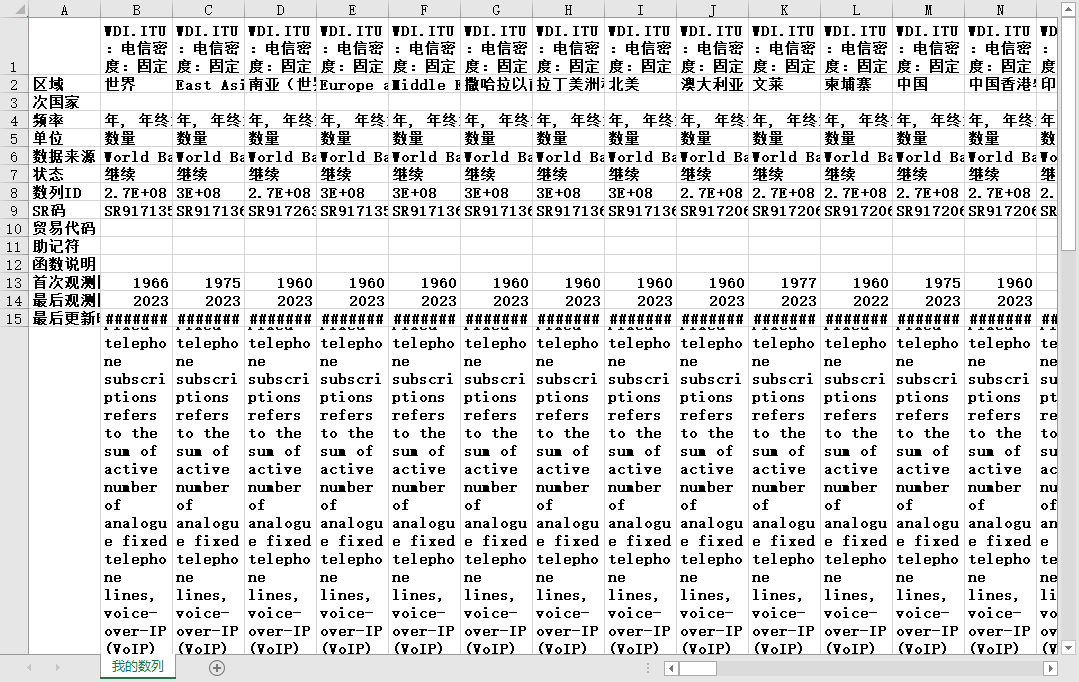 世界银行WDI电信统计ITU电信密度固定线路按地区分类全球世界各国1960-2023用户数量移动服务