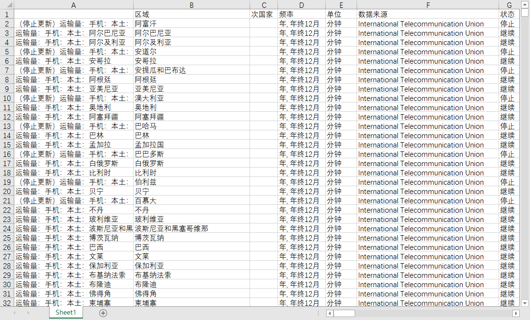 ITU.WTID电信统计数据: