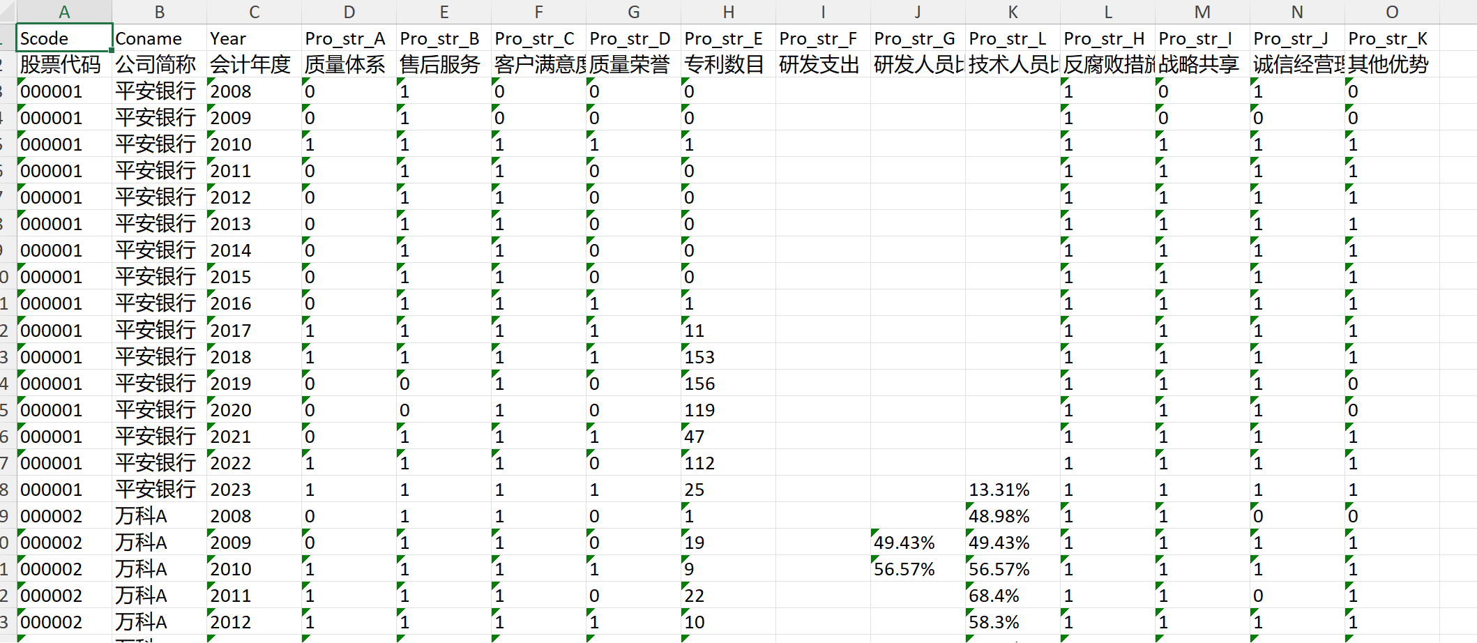 Pro_str_D[质量荣誉]-公司在产品质量方面获得了认证和荣誉,有则为1,没有则为0