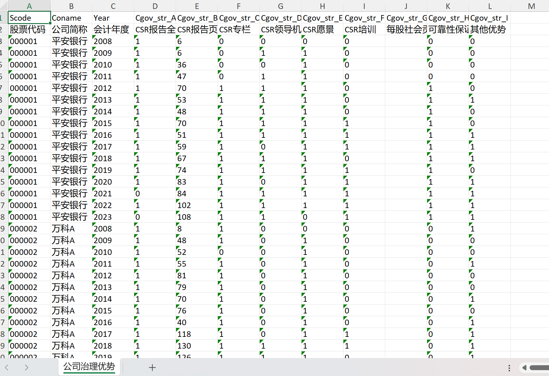 数据名称:上市公司社会责任信息CSR数据08-23年CSR报告可靠性页数专栏等公司治理优势1.4万+数据
