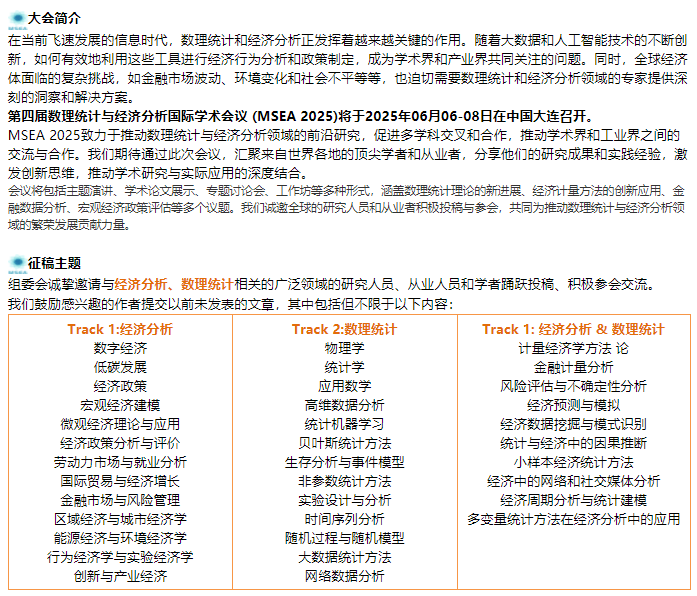 第四届数理统计与经济分析国际学术会议 (MSEA 2025)