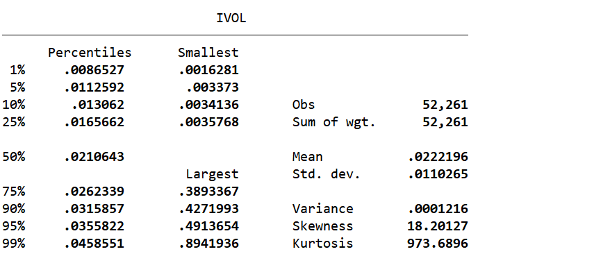 后基于回归结果计算残差标准差作为特质波动率度量指标 IVOL,计算方式见公式 ( 3) 。