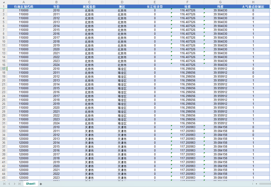 本次环境政策DID大全1.0包含以下数据: