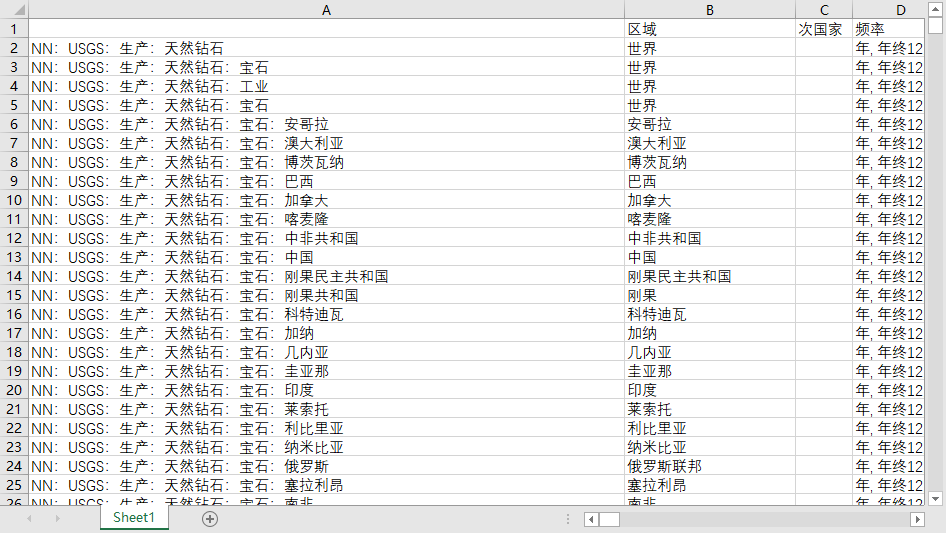 表 WB.USGS.DIAM:按国家或地区划分的钻石产量:宝石