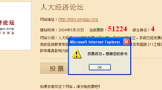 支持论坛,支持诚信,请朋友们继续为论坛投票!!!