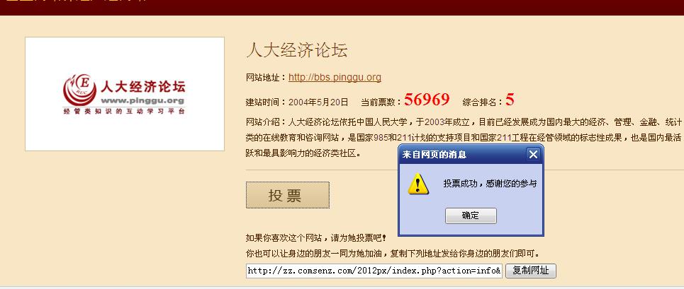 听说今天就结束了 。。。 ??? 还是积极的投了一票 今天都是第二次了 是在同一IP啊!!!