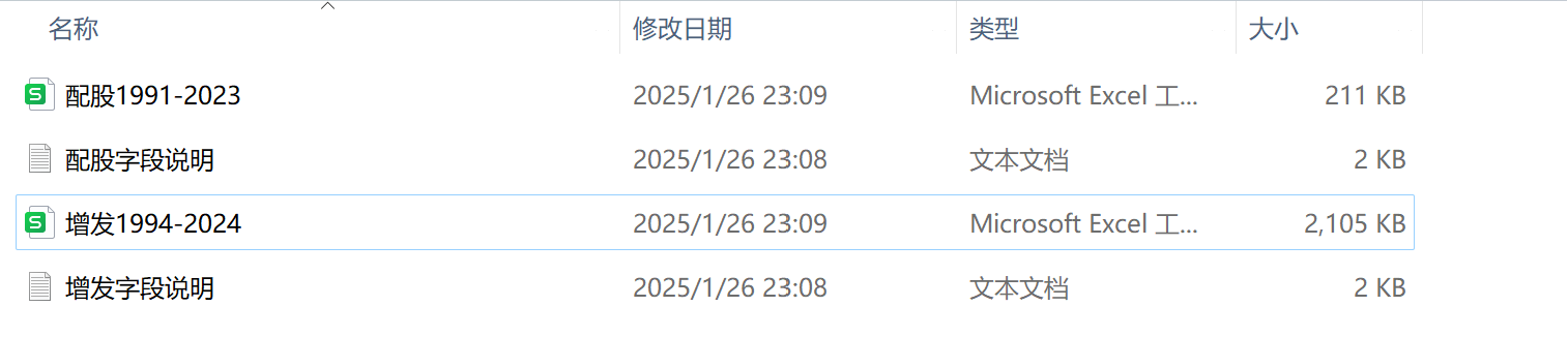 数据名称:上市公司再融资行为数据91-24年增发股票配股数据