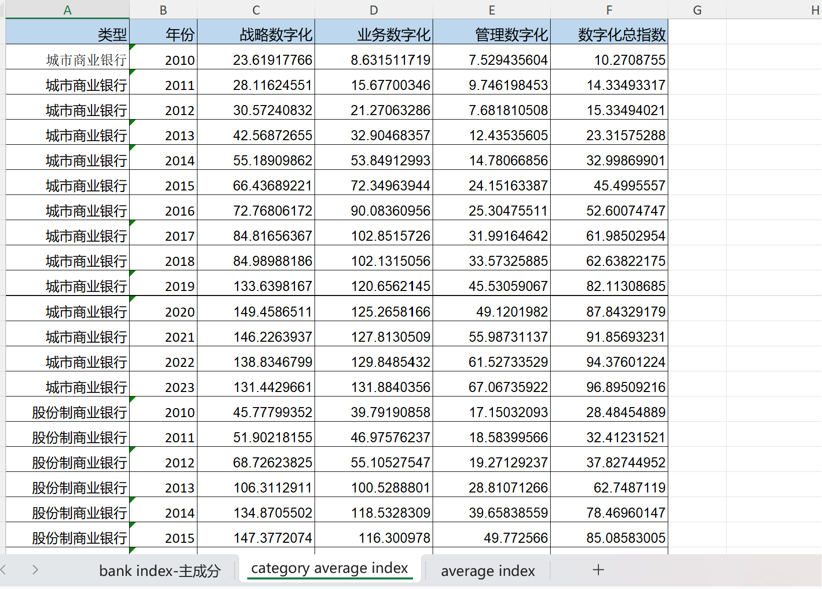 银行名称、银行类型、年份、战略数字化、业务数字化、管理数字化、数字化总指数。
