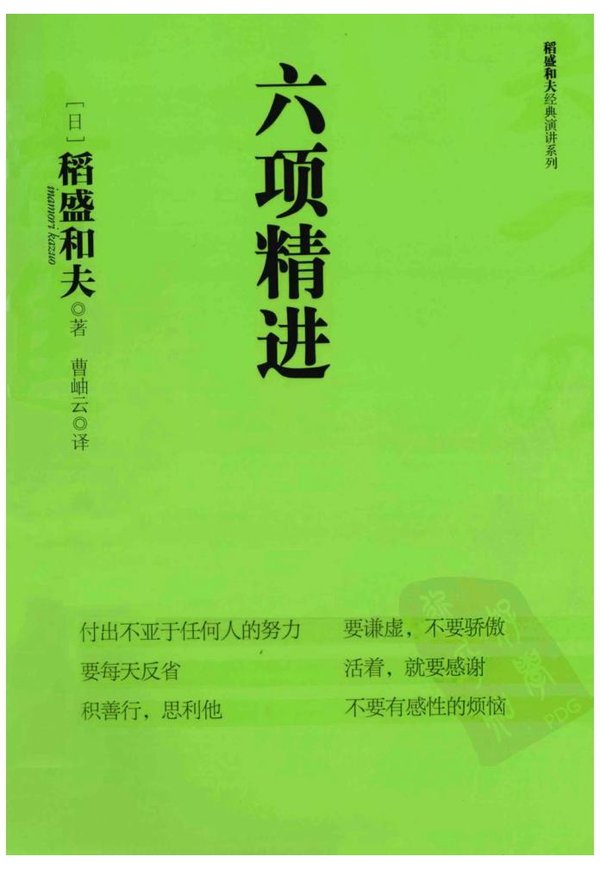 2010成功拯救日航的全球知名企业家稻盛和夫先生,和盘托出创造美好人生、打造优秀企业的人生成功法则。六项精进,是每个人一生中最重要的修炼。六项精进,是搞好企业经营所必须的最基本条件,也是度过美好人生必须遵守的最基本条件。