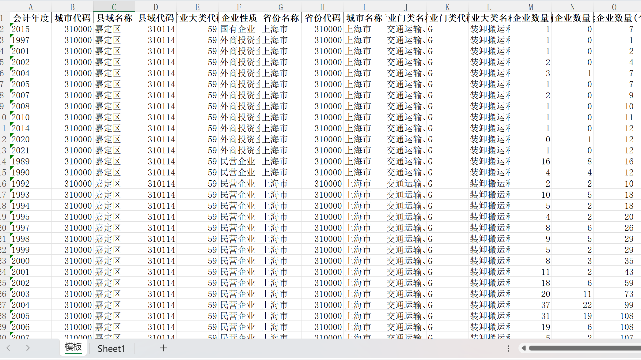 数据名称:各区县企业信息数据库50-22年各行业企业注册存续注销数量700万+数据