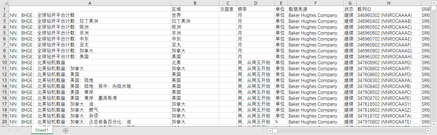 表 RB.BHC.NARC:北美钻机数量汇总:按地区分类