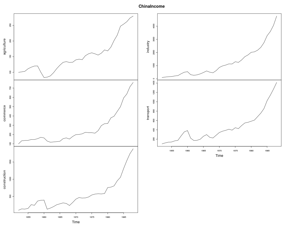 > plot(year, y7, xlab = "Time", type = "l")
