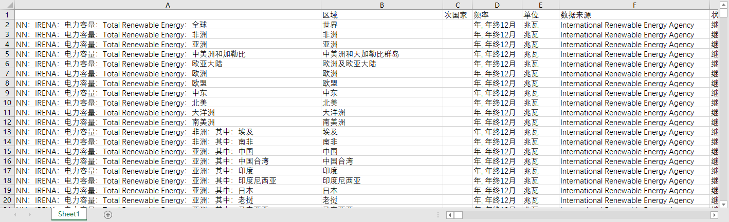 全球世界各国地区可再生能源统计2000-2023电力容量发电水能海洋风太阳能生物能源地热等