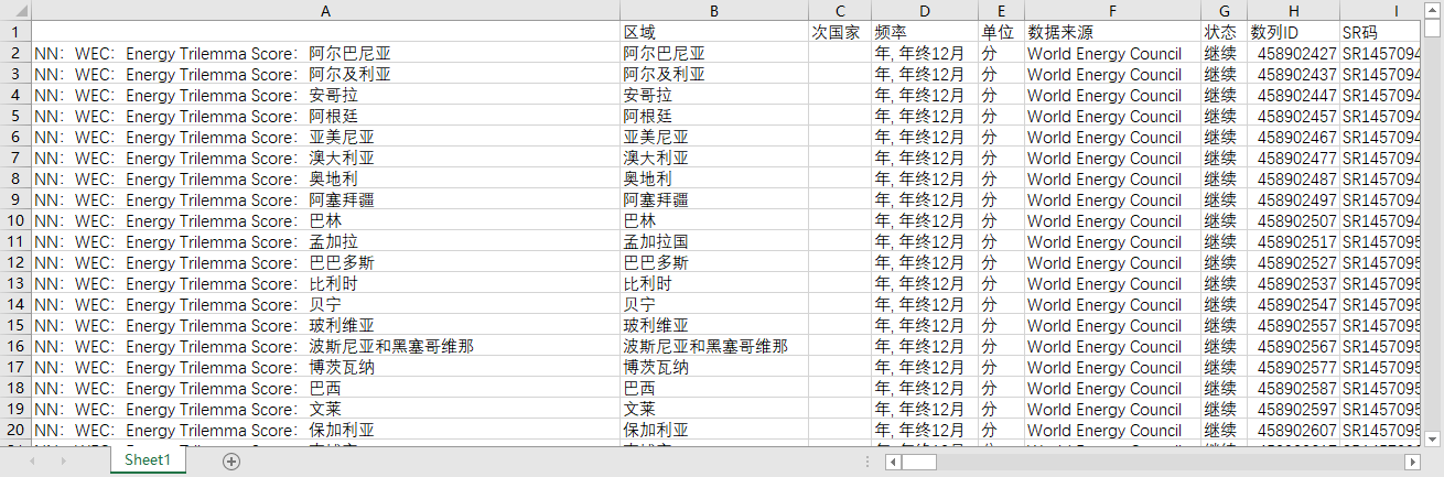 全球世界各国地区世界能源三难指数安全公平环境可持续性得分2020-2023