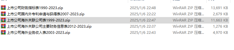 上市公司海外关联公司数据集1999-2023海外业务收入财务指标国内外专利申请与获得等
