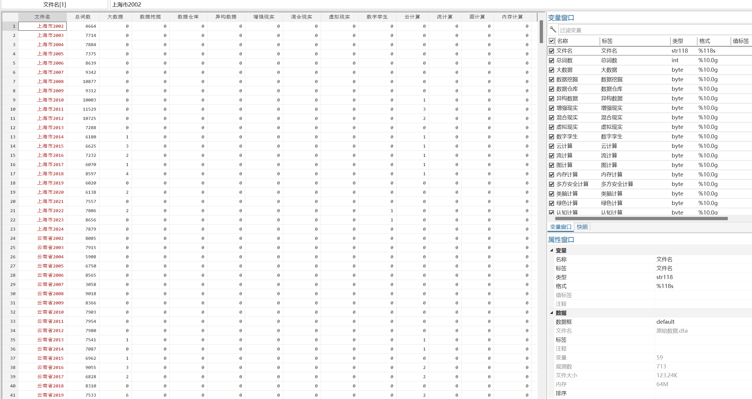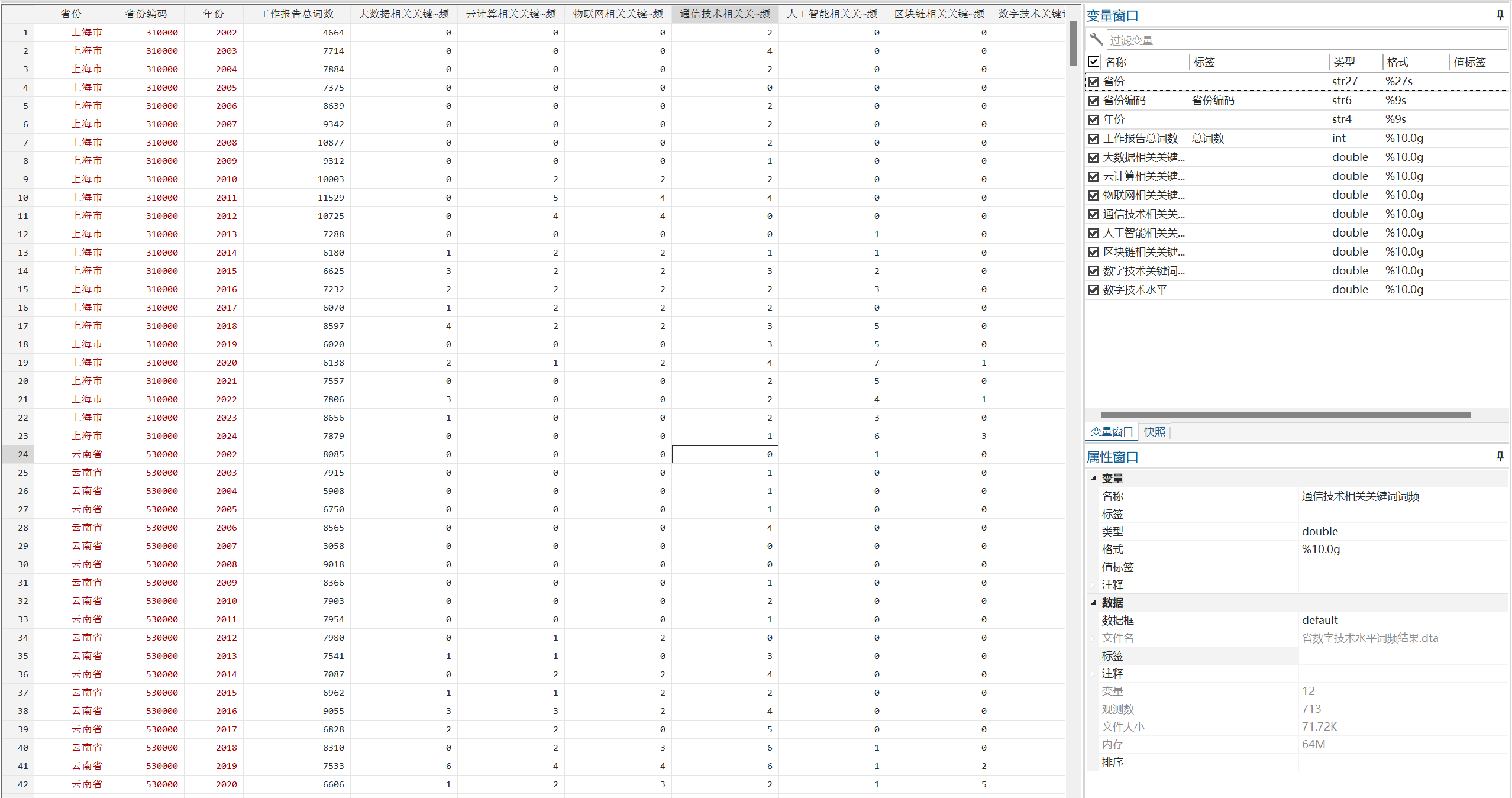 处理说明:原始数据为使用Python对地方ZF工作报告进行文本分析后获得(jieba分词,停用词表使用哈工大停用词表),后续使用Stata进行整理,最终形成面板数据形式