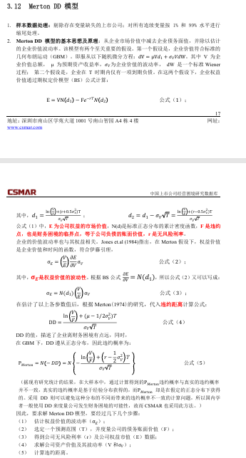 DDmerton [DD_merton] - 采用Matlab软件迭代和联立方程组方法,参考Merton违约距离计算公式计算出的违约距离,具体算法见说明书“Merton DD 模型”。