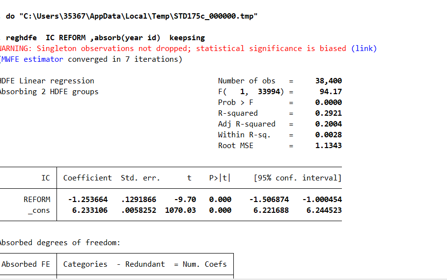 wdlbcj 发表于 2025-2-4 10:21 这里是因为出现了只有单期观测值的原因,但这也没关系 至于结果和你的预期不一致 这个是你需要考虑的理论 ...