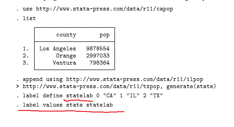 “label values state statelab”?