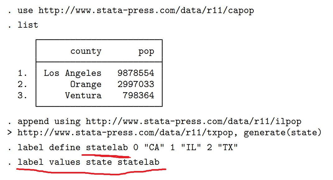 我们为什么不能直接用“label define state 0 “ca”...”。