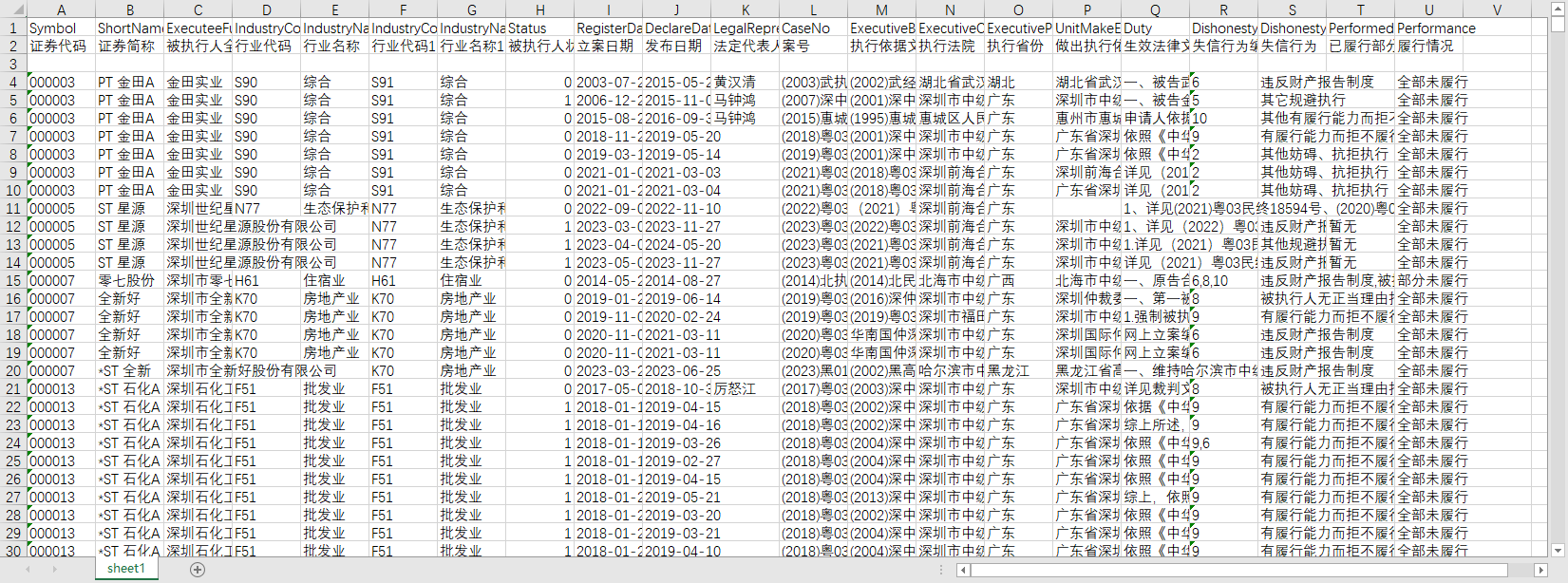 上市公司失信被执行人信息1998-202406行业名称执行法院执行省份等