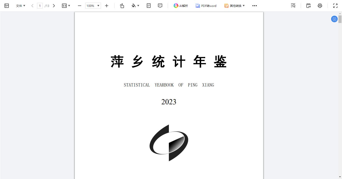 萍乡统计年鉴2023(PDF)