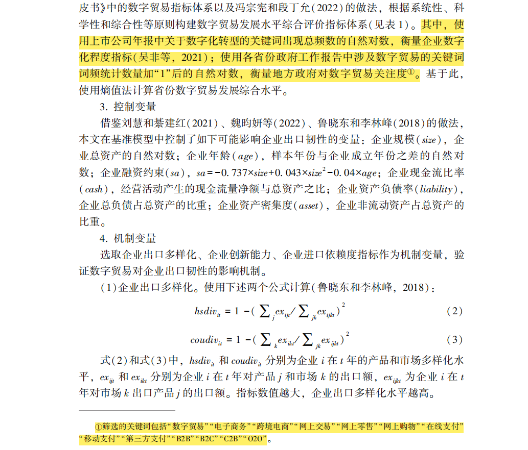 - 曹宇芙,邓宗兵,文江雪.数字贸易如何影响企业出口韧性[J].国际商务(对外经济贸易大学学报),2024,(02):41-60.