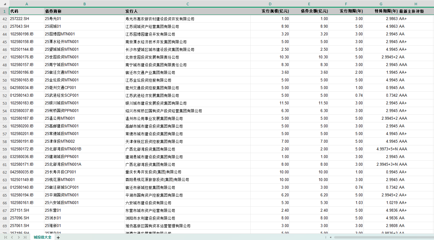 2025.1-2010中国城投债数据大全:省市县、评级、票面利率等