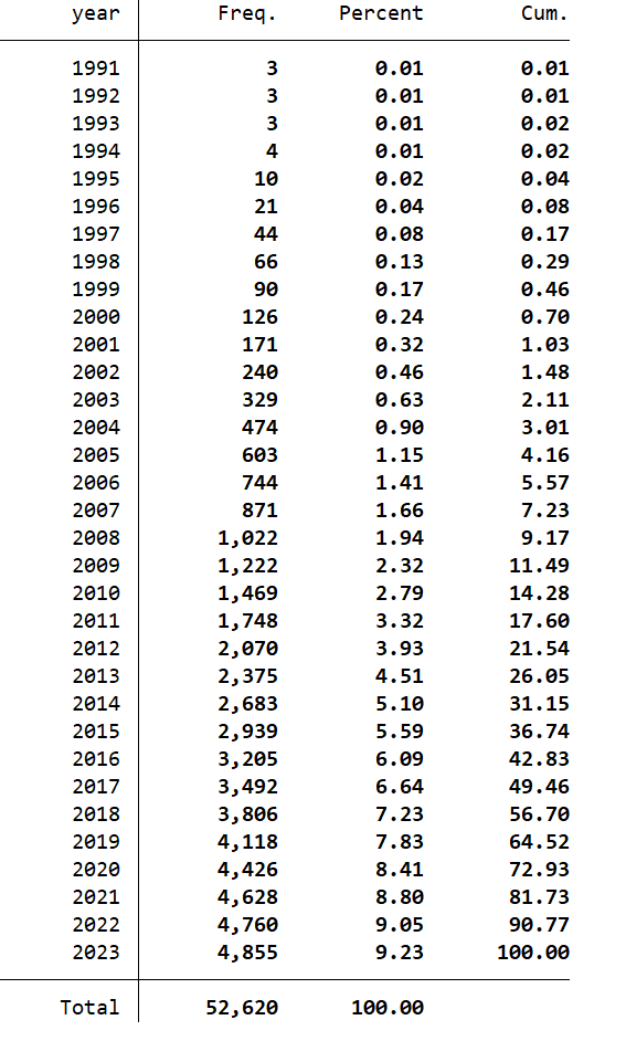 5.2万个样本,4855家企业,渐进式创新程度数据和去规模化处理的渐进式创新程度数据均有,已经整理为面板数据形式