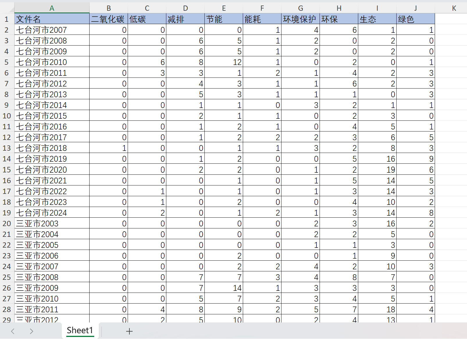 数据名称:地级市工作报告减碳环保词频数07-24年减碳重视程度词频数据及代码