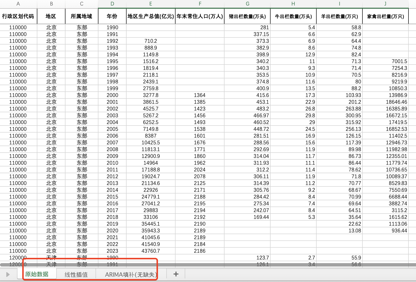 2023-1990全国31省份猪牛羊出栏量家禽出栏量数据(插值填补无缺失版)