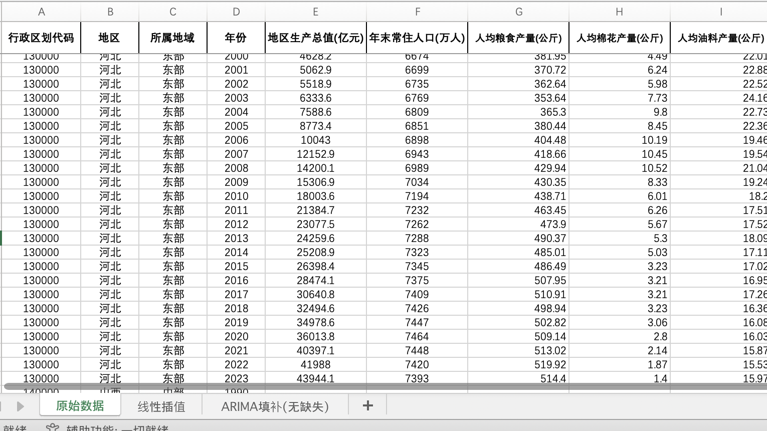 数据整理:Excel面板数据含原始数据(由于多年度指标不同存在缺失值)、线性插值、回归填补(无缺失)三个版本,提供您参考使用。其中,回归填补无缺失值,以保证面板数据的平衡性。
