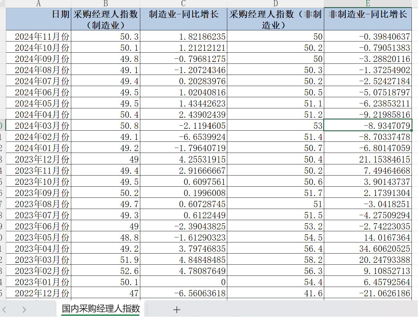 数据名称:全国PMI指数08-24年11月采购经理指数月度数据