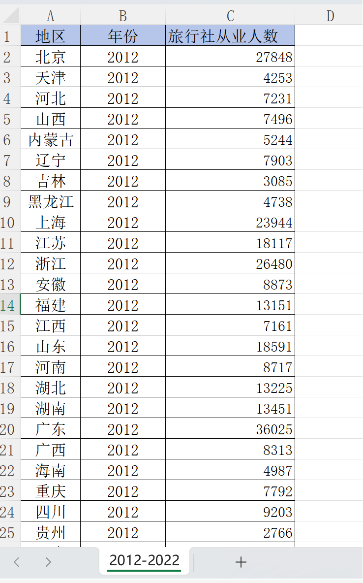 数据名称:各省份12-22年旅行社从业人数数据