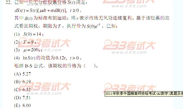 11年秋季金融数学 B-S模型(求助 希望各位高手帮忙一下)