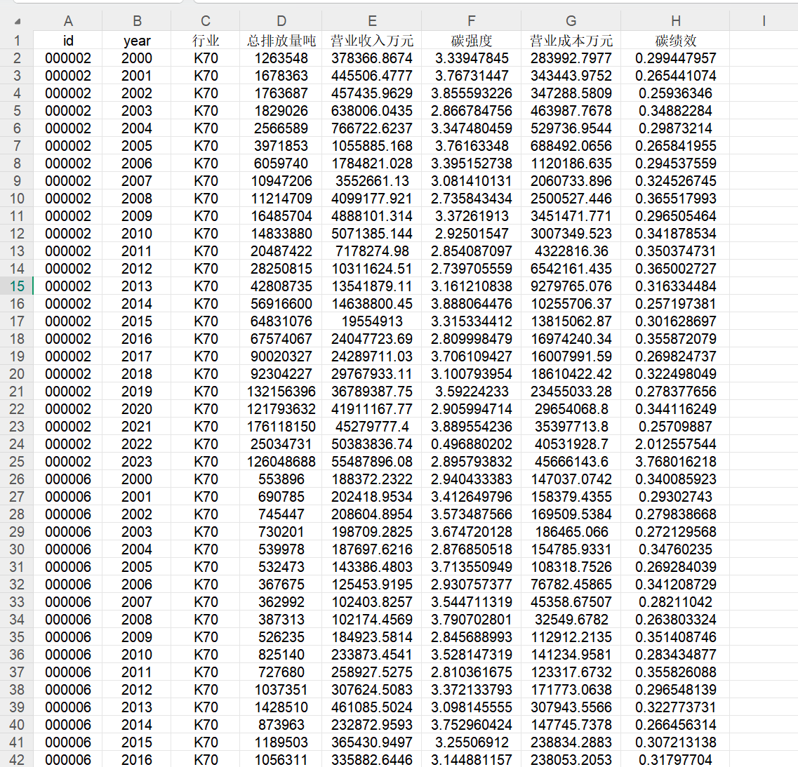【最新】上市公司碳绩效碳强度数据2023-2000