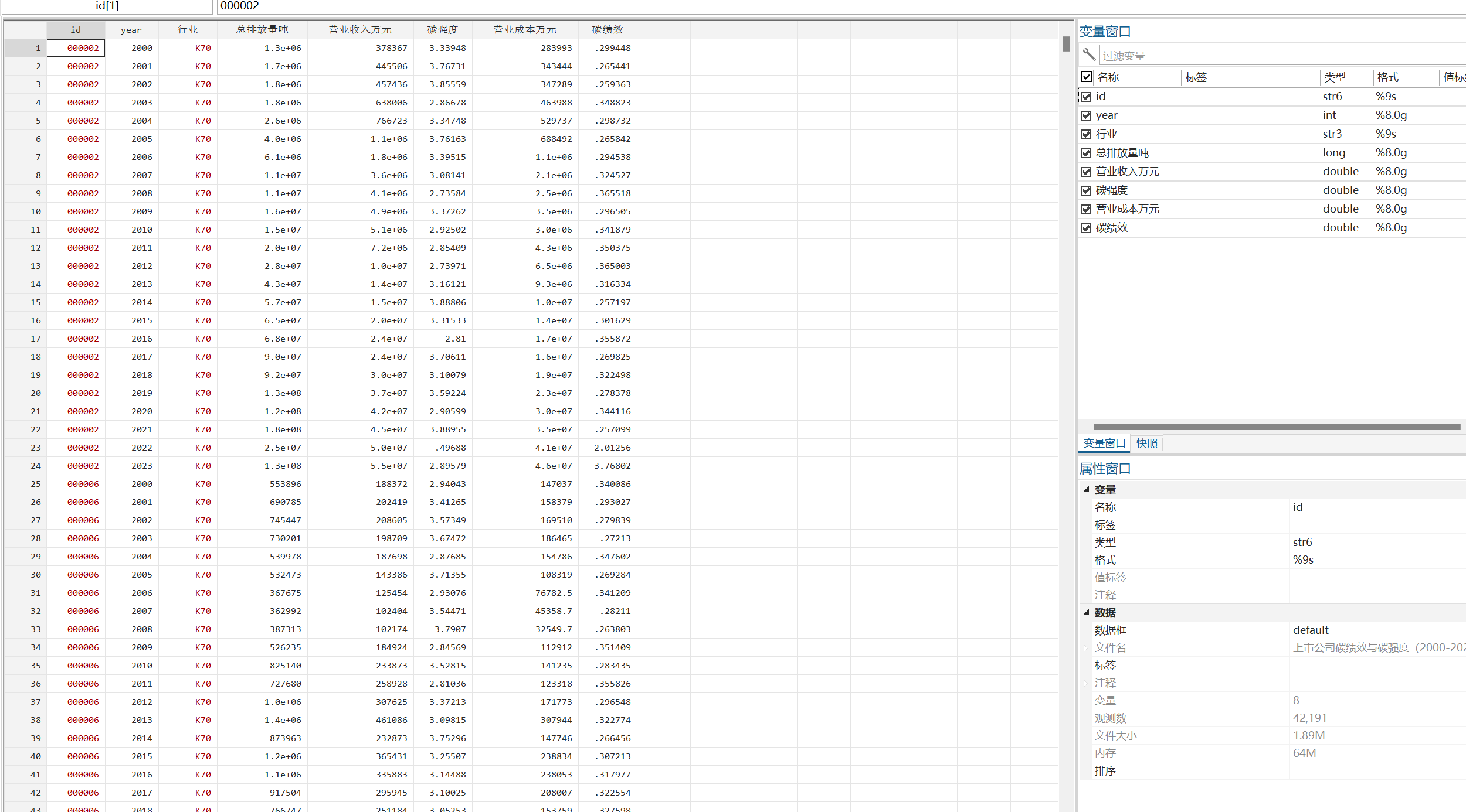 数据名称:上市公司碳绩效,碳强度数据数据2023-2000(企业层面)