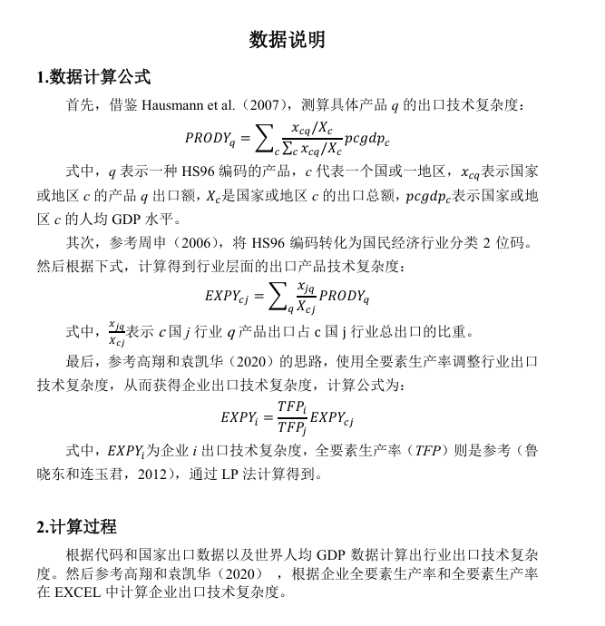 2012-2022年制造业上市公司出口技术复杂度数据+企业出口
