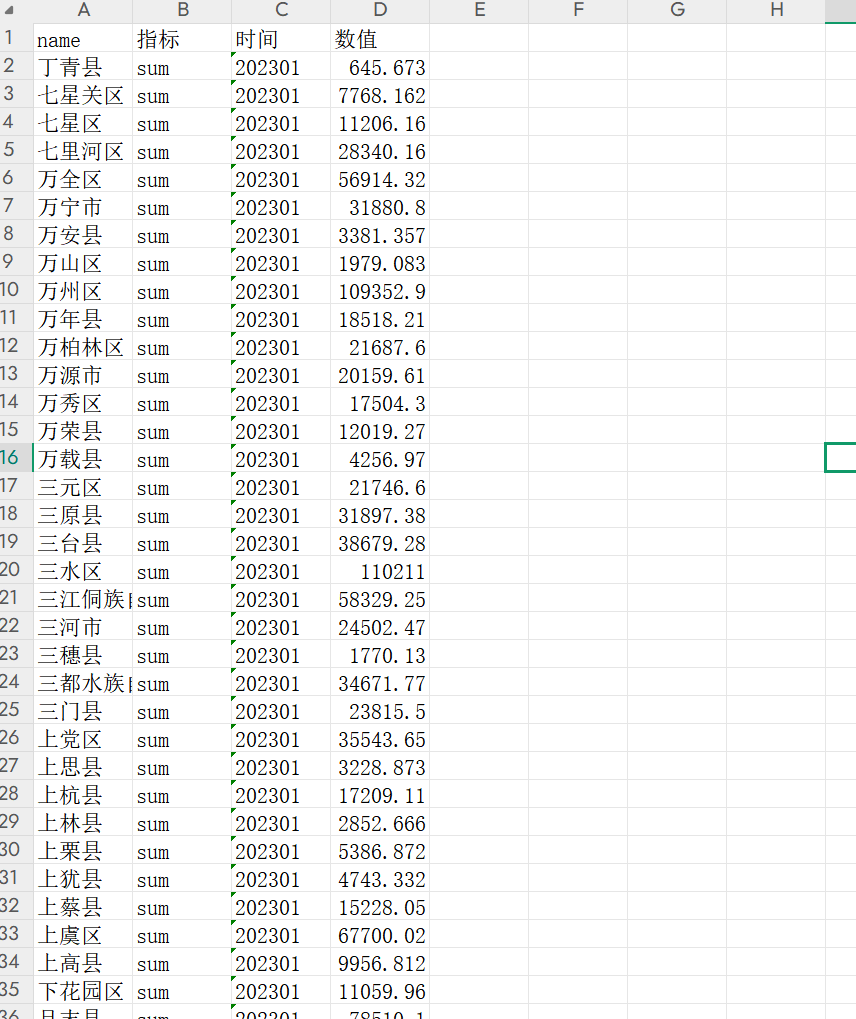 按省市县整理成面板数据,其中包括运输业指标排放量各省市县的最大值、最小值、平均值、总和。
