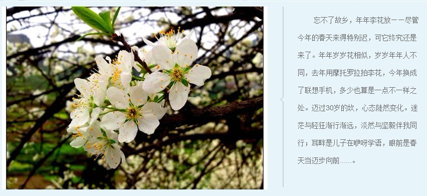 忘不了故乡,年年李花放——尽管今年的春天来得特别迟,可它终究还是来了。年年岁岁花相似,岁岁年年人不同,去年用摩托罗拉拍李花,今年换成了联想手机,多少也算是一点不一样之处。