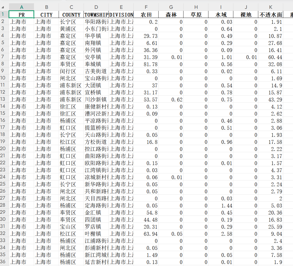 数据处理方法:我们将1990-2023年中国30米年度土地覆盖栅格数据按照我国乡镇级行政边界进行了汇总,得到了本次的数据!
